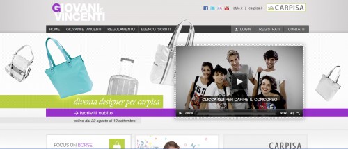 Carpisa lancia un contest online per tutti gli appassionati di design e moda perché vuole trovare tre persone qualificate da far entrare nel suo team di creativi. Partecipare al concorso è semplicissimo, infatti basta accedere al sito http://www.carpisa-giovani.it/, iscriversi al contest e uploadare tre progetti di design per la creazione di una borsa, di una valigia e di un accessorio con le varie schede tecniche.