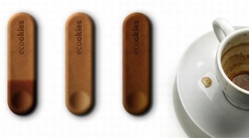 Questo prodotto di design nasce dalla necessità di rendere meno complicata la nostra vita tenendo sott’occhio l’aspetto estetico; così Victor Lopez e Rodrigo Maia hanno creato dei biscotti a forma dei cucchiaini a bacchetta, che si trovano all’interno dei distributori automatici.