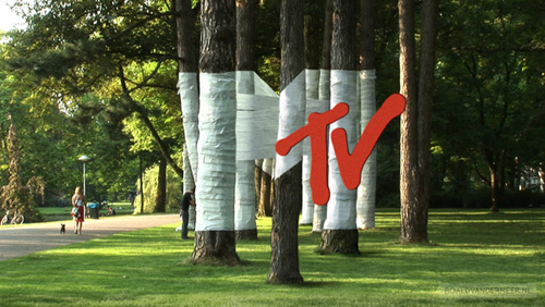 Alla base dell’idea creativa dei nuovi lavori di Van Der Meer c’è la creazione del logo iconico di Mtv posto all’interno di momenti che rappresentano la vita di tutti i giorni: le tre famose lettere MTV vengono inserite nel contesto urbano attraverso il collage e l’uso di materiali semplicissimi, talvolta assemblati, come ad esempio la carta o lo scotch.