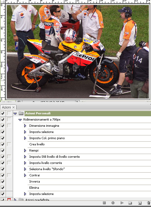 8) Ora abbiamo la nostra azione personale che ridimensiona le immagini a 700px di larghezza e gli crea un gradevole bordo.