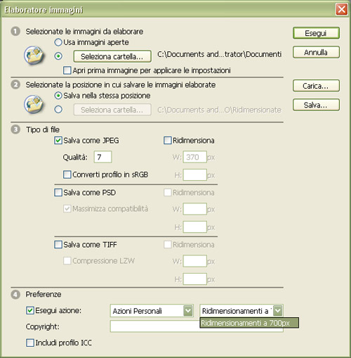 – Nel primo punto impostate la cartella contenente le immagini da elaborare.