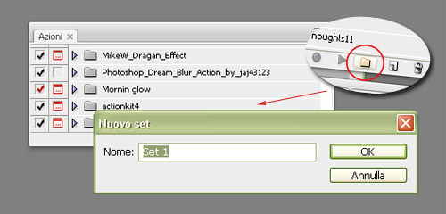 2) Premete sul pulsante Crea nuovo set in basso nella palette Azioni, nominate il nuovo set come più vi piace..