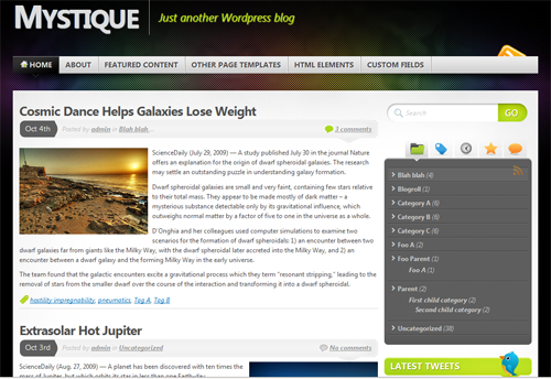 Mystique è un tema interessante se volete inserire nel vostro blog i banner pubblicitari, infatti la sezione a destra è dedicata proprio a questo uso.
