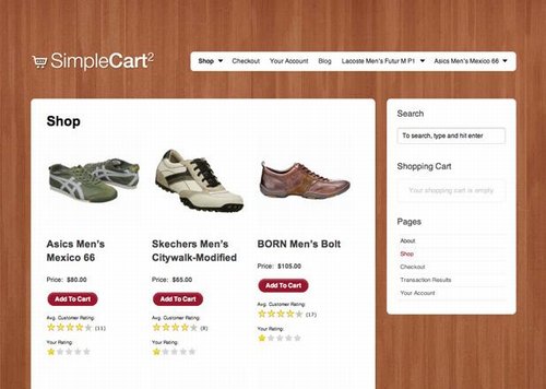 SimpleCart è particolarmente adatto per realizzare un portale E-Commerce perché viene dato molto spazio ai prodotti, il menù è posto nella parte superiore della finestra, mentre l’opzione “search” è stata inserita in una griglia vicino ai prodotti per facilitare la ricerca.