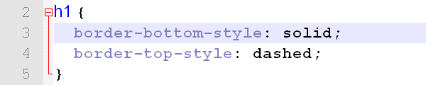 - proprietà estese: il cui valore si applica ad un singolo lato del bordo. In questa proprietà si utilizzeranno le parole top, bottom, right e left per indicare rispettivamente il lato superiore, inferiore, destro e sinistro del bordo. L’uso di proprietà estese consente evidentemente di definire un bordo con caratteristiche diverse su ciascuno dei quattro lati.