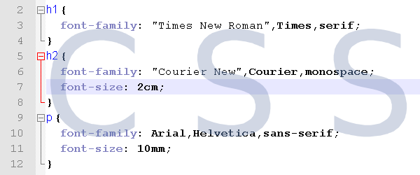 Ovviamente la proprietà font-size è generalmente combinata con la proprietà font-family come, a titolo di esempio, in questo spezzone di foglio di stile CSS: