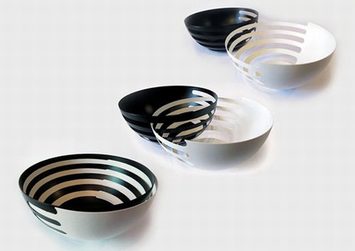 Le ciotole possono essere usate separatamente, oppure intersecando le fasce e con un semplice gesto si ottiene un’unico oggetto.
