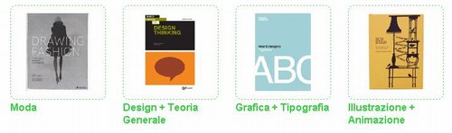 Nella sezione libri, ci sono molte sottocategorie come ad esempio pubblicità, architettura, design, tipografia ecc. e i prezzi variano dagli 8 dollari a un massimo di 20.