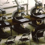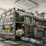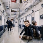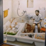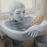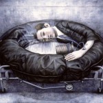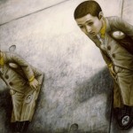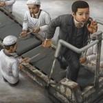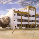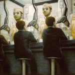 lo stile inconfondibile di Ishida sono i personaggio che dipinge, infelici, scomposi e assemblati in macchinari o costruzioni.