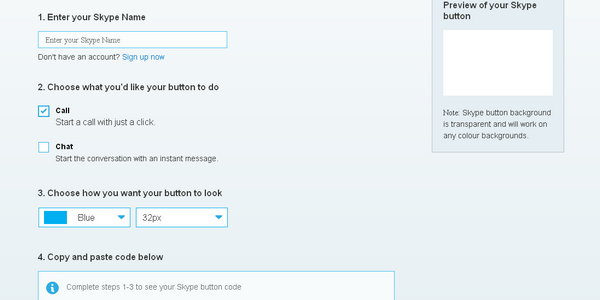 L’inserimento dei pulsanti Skype per siti web è basata sulla creazione di brevi codici che possono essere generati facilmente nella pagina apposita predisposta sul sito Skype.com (v. immagine). Vediamo quindi come utilizzare questo strumento: