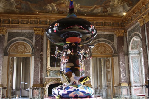 Nella sala dell’incoronazione di Napoleone compare un autoritratto di Murakami incoronato: “Gli abiti nuovi dell’imperatore”. Il pavimento del salone delle guardie è stato tappezzato da una moquette di fiori e gli arredi originali sostituiti.