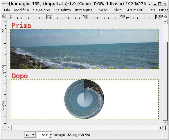 “Coordinate polari” è il nome di uno dei numerosi filtri di GIMP che permettono di modificare in modo creativo foto ed immagini. Nel caso specifici si tratta di un filtro che permette di deformare l’immagine fino ad ottenerne una versione circolare.