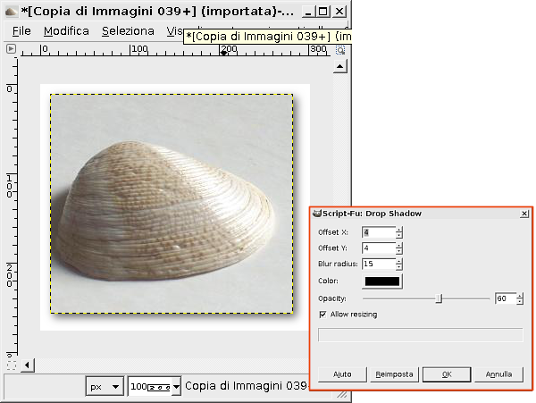 In GIMP è possibile aggiungere un’ombra al bordo di una immagine creando un interessante effetto trimensionale. Per ottenere questo risultato si utilizza il filtro “Proietta ombra” che in alcune versioni del programma è indicato nella sua forma inglese come “Drop Shadow”.
