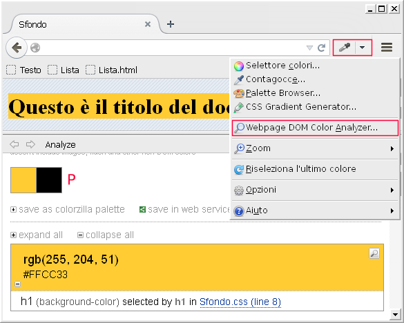 ColorZilla, analizzare i colori di un pagina web (DOM)