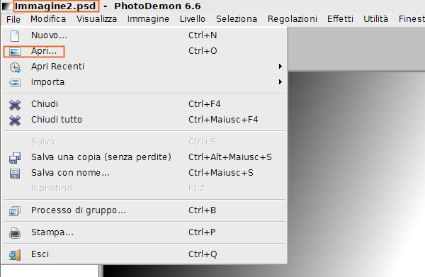 Il supporto per il formato PSD è nativamente integrato in PhotoDemon in maniera del tutto trasparente. Basta infatti avviare il programma ed andare quindi nel menù “File > Apri”. Non resta a questo punto che indicare il file con estensione PSD da caricare e confermare l’operazione cliccando sul pulsante “Apri”.
