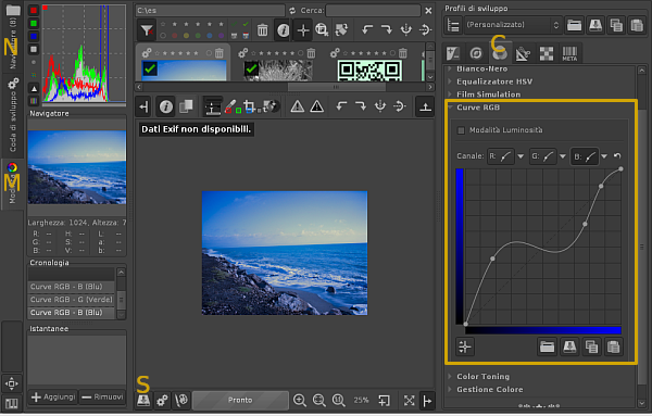 RawTherapee, regolare i colori di una foto con le curve RGB
