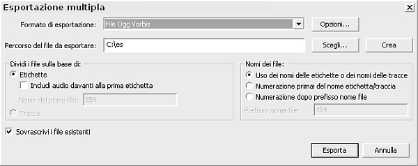 L’esportazione multipla di Audacity