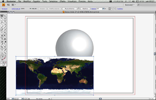 importiamoci nel documento l’immagine della cartina della terra (questa l’ho scaricata gratuitamente dal sito worldmapfinder e ridimensioniamola in modo che sia grande poco più della nostra sfera.