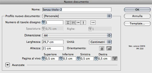 Come prima cosa creiamo un nuovo documento, per comodità io ho scelto un A4 standard, ma potete utilizzare il formato che vi è più congegnale.