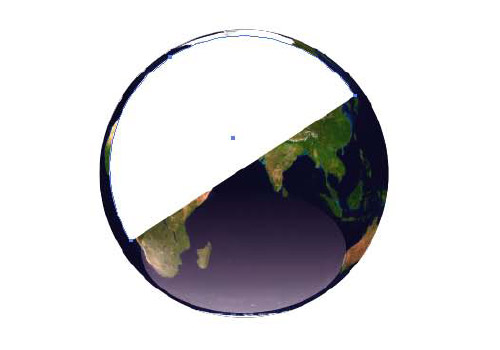 Creiamo nuovamente un cerchio bianco grande poco meno della nostra sfera, cancelliamo un punto in modo da creare una mezza luna e ruotiamolo in modo da posizionarlo come la figura sottostante: