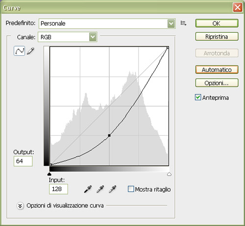 Sperimentate un pò per trovare la giusta curvatura che renda la luminosità generale simile a quando piove.