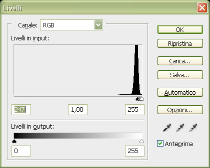 7) Andate ora in Immagine–>Regolazioni–>Livelli ed impostate più o meno come nell’immagine sottostante: