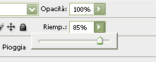 8) Ora impostate il livello “Pioggia” su “Scolora” ed abbassate il Riempimento a circa l’85%.