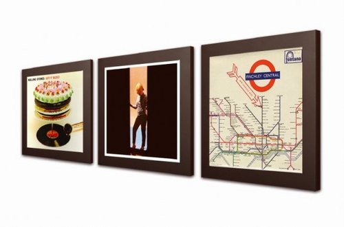 Seguendo questa onda modaiola, da qualche anno gli inglesi di Art Vynil hanno prodotto delle cornici pensate appositamente per appendere dischi, realizzate con un’apertura verticale che permette facilmente di inserire e scambiare le copertine, senza staccarle dalla parete. Un sistema di gommini poi sostiene e fissa all’interno del quadro la busta di cartone senza rovinarla, adattandosi a diversi spessori.