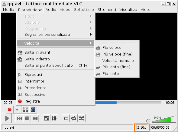 Regolare la velocità in VLC