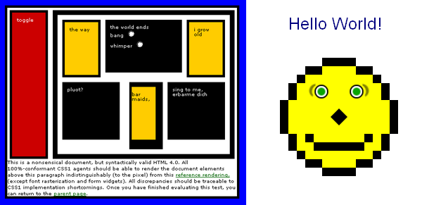 Attualmente Ian Hickson per The Web Standards Project mantiene tre diversi Acid Test di severità crescente sviluppati a partire dalla fine degli anni 90. L’Acid Test 1 è il più anziano di questi strumenti e fu realizzato soprattutto con l’obiettivo di verificare la compatibilità dei browser con le specifiche CSS1. In altre parole il test verifica la capacità del browser di interpretare un layout di pagina gestito con i fogli di stile. La maggior parte dei browser oggi in uso è in grado di superare senza problemi l’Acid Test 1. Il test è disponibili a questo indirizzo.