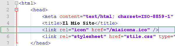 In questo esempio si presuppone che l’icona “miaicona.ico” sia posta nella directory principale del sito, in caso contrario ne andrà inserito tra gli apici il percorso relativo o completo. E’ da notare infine che per la favicon in generale si può usare qualsiasi nome ma si ottiene una migliore compatibilità con i vecchi browser se si usa in nome standard “favicon.ico”.