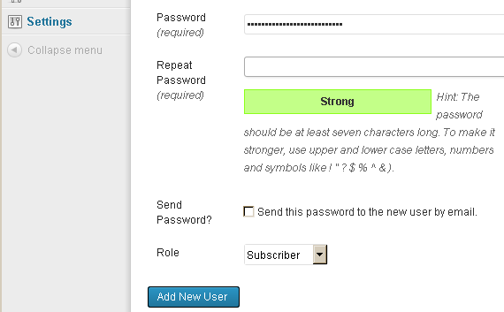 Più importante è la voce “Send password”. Spuntando la casella “Send this password to the new user by mail” possiamo infatti decidere di inviare una copia della password scelta all’indirizzo di posta elettronica del nuovo utente.